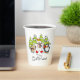 Un Navidad adorable y colorido diseña tazas de papel con un oso polar, pingüino y ratón, todo con bufandas y patines de hielo con árboles cubiertos de nieve y texto que dice ¡Son Navidades!
