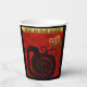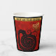 En un cuadrado hay un papel de serpiente negro cortado, colocado en el centro mirando un adorno dorado dentro del cual está la segunda serpiente con ideograma. Detrás de la escena hay un fondo rojo en el que las letras decorativas y ornamentadas forman las palabras: AÑO DE LOS APERITIVOS. Diseño en una taza cuadrada de papel. Coincidiendo con la postal de vacaciones y más... Perfecto para el Año Nuevo Chino de la Serpiente 2025 o cumpleaños (personas nacidas en Año Serpiente). — "La serpiente (蛇) es la sexta del ciclo de doce años de animales que aparecen en el zodiaco chino relacionado con el calendario chino. Según una leyenda, hay una razón para el orden de los animales en el ciclo. Se realizó una carrera para cruzar un gran río, y el orden de los animales en el ciclo se basó en su orden para terminar la carrera. En esta historia, la serpiente compensó por no ser la mejor nadadora al dar un paseo oculto en la pezuña del caballo. Cuando el caballo estaba a punto de cruzar la línea de meta, la serpiente saltó, asustando al caballo y, por lo tanto, posando para el sexto lugar. Se puede decir que las personas nacidas en esas fechas han nacido en el "Año de la Serpiente", aunque también llevan la siguiente señal elemental: 10 de febrero de 1929 - 29 de enero de 1930 = Serpiente de la Tierra 27 de enero de 1941 - 14 de febrero de 1942 = Serpiente Metalizado 14 - 2 1954 = Serpiente de agua 2 de febrero de 1965 - 20 de enero de 1966 = Serpiente de madera 18 de febrero de 1977 - 6 de febrero de 1978 = Serpiente de fuego 6 de febrero de 1989 - 26 de enero de 199900 = Serpiente de la Tierra 1 febrero 2002 = Serpiente Metalizado 10 febrero 2013 - 30 enero 2014 = Serpiente de agua 29 enero 2025 - 16 febrero 2026 = Serpiente de madera 15 febrero 2037 - 3 febrero 2038 = Serpiente de fuego.... (Wikipedia)