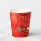 Festividad tradicional china saludando con petardos, nudos suertudos y nubes auspiciosas + papel de conejo dorado cortado con ideograma Fu en un círculo + dos niños lindos deseando Feliz Año Nuevo. Diseño en taza de papel fiesta. Suministros de fiesta, tarjeta de saludo estándar, sobre rojo y más... Perfecto para el Año Nuevo Chino del Conejo 2023.