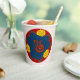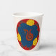 La imagen de una serpiente es un tema común en el arte chino. Para tus comidas fiestas, este vaso de papel de color rojo intenso, azul marino, amarillo y oro, combina temas orientales y Art Nouveau para un diseño sorprendente y original de Leslie Sigal Javorek.