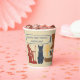 Agrega tu propio mensaje para crear suministros fiestas personalizados con un tema egipcio. Estas tazas de papel presentan un collage de diferentes ilustraciones inspirados en las obras de arte del antiguo Egipto con tu propio mensaje personalizado dentro de un marco en forma de cartuche. Los gráficos amarillos, naranjas, rojos, marrones y azules están colocados sobre un fondo de arena clara.