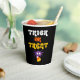 Estas lindas tazas de papel de la fiesta de halloween presentan un fondo negro con una araña adorable sosteniendo un trozo de maíz dulce y el saludo "Trick or trick". También puede personalizar este diseño agregando su propio texto. Ver nuestra colección de Halloween para la invitación de coordinación!