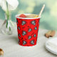 Añade estas divertidas tazas de papel de Halloween a tus suministros para fiestas de Halloween. Estas tazas presentan arañas y salpicaduras adorables en un fondo rojo.