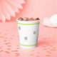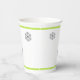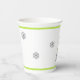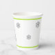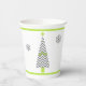 Navidades fiestas de tazas de papel hecho en un tema moderno, con un árbol de Navidad hecho en un patrón de chevron gris y blanco con acentos verde cal y copos de nieve grises. Se ofrecen productos para fiestas de fin de semana.