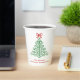 Modernas tazas de papel de Navidades con un simple y lindo doodle de un árbol de Navidad con un arco junto con tu elección de texto.