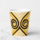Los antiguos patrones de azulejos de Persia tuvieron una gran influencia en los artistas occidentales en los años 1920-1930, el resultado fue lo que hoy llamamos "Art Deco". Esta elegante taza de papel de colores llamativos presenta a la artista digital Leslie Sigal Javorek interpretando uno de esos patrones. Esta en diferentes tonos de amarillo, crema y negro.