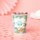 Dinosaurio floral de color azul y verde, copa de papel de cumpleaños Personalice esta impresionante taza de papel con los detalles de su fiesta fácil y rápidamente, simplemente presione el botón personalizar it para reorganizar y formatear el estilo y la ubicación del texto también