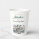 Esta taza de papel de ducha para bebés ofrece un tema de aventura que muestra un paisaje acuático natural de montañas, estanques y pinos. Estas tazas personalizadas serán un acento divertido para su evento de ducha de bebé.