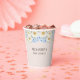 Celebra tu Baby Shower Floral Garden con estilo con estas copas de papel encantadoras y personalizadas. Con un elegante arreglo de hidrangeas azules y peonías blancas sobre un fondo beige sofisticado, estas tazas le aportarán un toque de gracia floral a su evento. Perfecto para una ducha de bebé en el jardín, estas tazas están inspiradas en la decoración y la moda icónicas de Nancy Meyers, añadiendo una estética atemporal y refinada a su reunión. Ideal para una ducha de niño con flores, estas tazas de papel son prácticas y hermosas, complementando a su fiesta con elegancia sin esfuerzo.
