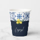 Vasos De Papel Azul marino italiano Tile amarillo Lemon Bridal Du