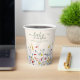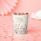 These sweet and simple baby shower paper cups are perfect for welcoming a little one with a touch of nature. The design features the title "baby in bloom" in a charming script and serif font. The bottom of the cups are adorned with a beautiful field of hand painted watercolor wildflowers, adding a touch of color and whimsy. The template wording is fully customizable with your own name and date, making each cup a truly unique decoration for the special day. These paper cups are sure to impress your guests and set the tone for a beautiful and memorable baby shower.