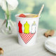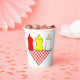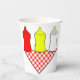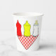 Cuidados vasos de papel para bebés con parrilladas con ketchup, mostaza y biberón.