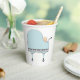 Las creativas tazas de ducha de bebé con forma de piano de cola azul le gustaron a un cochecito y un lindo bebé.