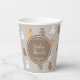 Un adorable patrón de oso dulce con monograma inicial personalizado sobre una textura de lino beige marrón se ve de fondo. Un diseño ideal para todo aquel que ame osos, animales miedosos, animales del bosque, etc. Un tazas de papel de ducha para bebés neutra de género que se pueden personalizar a tus detalles. En esta colección de diseño se pueden ver las invitaciones, la decoración y los favores de las duchas de bebés, que coinciden con el patrón de oso.
