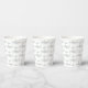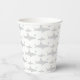 Un tiburón con tazas de papel para la ducha muestra a una madre y un tiburón pequeño siguiendo un patrón repetido con corazones azules. Añade estas tazas de papel a tu tiburón o debajo de la ducha de bebé marina.