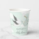 El diseño incluye una cigüeña dulce dibujada a mano con un diseño de nubes blancas onduladas. El encabezado del script no es modificable. El resto del texto es totalmente editable. Para una personalización más avanzada de este diseño, simplemente seleccione el botón "Personalizar" de arriba.