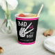 Celebrate your little one's second trip around the sun with this Bad 2 the Bone 2nd birthday party paper cup. Designed in classic black and white and hot pink with skeleton hand making a peace sign, this cup is perfect for highlighting your wild ride through the terrible twos. Personalize it with your event details for a party that will be two good to be true!