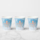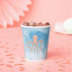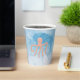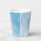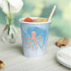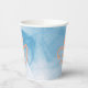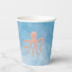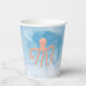 Bajo las tazas de papel marino. Fondo azul acuoso con un pulpo rosa lindo.