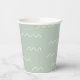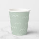 Bajo las tazas de papel marino. Fondo verde claro con olas blancas.