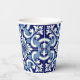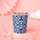 Este producto tiene un diseño intrincado con un fondo azul oscuro y patrones ornamentales blancos. El diseño recuerda a los estilos tradicionales de cerámica o porcelana, que pueden interesar a los amantes de la estética clásica o vintage.