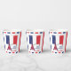 Copas de papel Patriotic BASTILLE DAY, con el contorno del mapa combinado con la bandera de TRICOLORE de FRANCIA. A la derecha está el lema francés: Liberté, Egalité, Fraternité y debajo se lee Joyeux Quatorze Juillet (iluminado, feliz 14 de julio). A la izquierda hay un gráfico de la Torre Eiffel (gira Eiffel). Este diseño se repite en la parte posterior y en el fondo están rayas azules, blancas y rojas. Estas tazas de papel del Día de la Bastilla serían una adición ideal a las celebraciones del Día Nacional Francés.