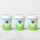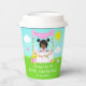 Esta taza de papel tierno y caprichoso tiene un chica de pelo negro con piel oscura en un puesto de limonada rosa decorado con flores y un lienzo. En el fondo hay un cielo azul, sol y mariposas. El texto combina fuentes decorativas y sans serif para un estilo elegante y moderno. Esto es perfecto para una fiesta de cumpleaños de verano. Gráficos de MUJKA
