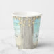 Estos rústicos vasos de papel de ducha costera de novias en la playa presentan una escena de olas del océano azul acuático estrellándose contra la playa, con un marco de madera templada, y luces de cuerda acentuando la parte superior. Consulte la colección para ver las placas y servilletas de papel a juego y otra decoración de mesa.