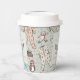 Estas tazas de papel Baby Shower de invierno o de temporada de feriado neutro en género presentan un lindo patrón de ilustraciones de Navidades dibujados a mano con trajes de ropa de pajama, lindos animales de felpa, botellas de bebé, pacificadores, regalos y pequeñas estrellas amarillas. nombre y evento de personalizable. Elegante fondo verde sabio.