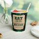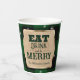 Estos vasos fiestas personalizados presentan un tema de Navidades festivos. El fondo presenta un estilo rústico de manteca de búfalo verde con copos de nieve. En el centro se imprime una etiqueta de estilo de papel pergamino vintage con un borde de Relieve metalizado dorado. La frase "Come Bebe and Be Merry" se imprime en la parte superior en una fuente verde oscuro, seguida de un nombre de familia de ejemplo. Puede personalizar los vasos para incluir su propio nombre personalizado u otro texto.