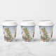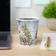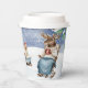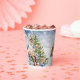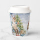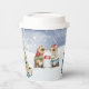 Esta copa adorable cuenta con una escena de bosques de color agua con animales del bosque disfrutando de bebidas de invierno en la nieve.