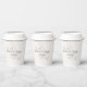 These elegant wedding cups feature a soft ivory background with a delicate sketched floral illustration and your names and date in romantic script, creating a chic and practical detail for serving coffee, cocoa, or signature drinks at your celebration.