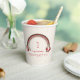El tema del primer cumpleaños de Berry presenta ilustracion de arcoiris verde, rosa y rojo con fresas, flores y hojas. El texto es rojo.