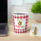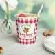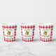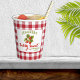 Súper adorable tema de fresa con un clásico mantel de picnic con un patrón de fondo de búfalo rojo y blanco.
