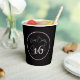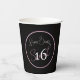 Complete your celebration with this chic modern minimalist Sweet 16 happy birthday paper cup, designed with a bold black background, elegant pink script and a classic white “16” for a clean, stylish finish.