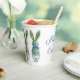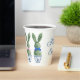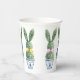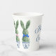 These Easter paper party cups feature cute bunny rabbit green topiaries with pink, blue and yellow bows in blue and white chinoiserie flowerpots. Personalize the holiday message with your choice of special text.