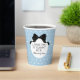Añada este tópico de polka azul cielo y blanco a cualquier tema de Halloween El Pequeño Boo está en la decoración de la ducha Camino y a los clientes les encantará. Un encantador arco negro marcos fácil de personalizar texto que le da a esta taza un ambiente dulce y chica mientras se queda en el tema y celebra al niño en el camino con colores de negro, blanco y azul.