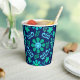 Vasos De Papel Blue Retro Style Floral and Sun Symbol Pattern