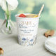 These “Baby in Bloom” party cups were inspired by a soft meadow of blue wildflowers dancing in a spring breeze. The airy watercolor blooms create a fresh botanical look that makes every drink feel part of the celebration—perfect for a charming garden or spring baby shower.
