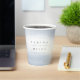 Este diseño de taza de papel boda de moda costera coincide con nuestra colección Ebb Tide, que incluye lavados de acuarela de color verde polvoriento azul a lo largo de la parte superior e inferior, con el texto de su personalizado en letras grises suaves.