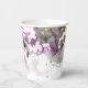 Personalice estas tazas de papel Boda color agua de flores púrpura para su bonito de verano informal pero elegante, recepción matrimonial o fiesta con ducha de novia. Estas tazas desechables informales pero elegantes presentan una fotografía floral de acuarela digital pintada de pétalos de flores de lilo morado claro y oscuro con un fondo blanco.