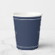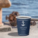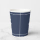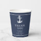 Las piezas de esta elegante suite nupcial presentan un estilo náutico clásico con un aspecto limpio y minimalista. Las elegantes olas en tonos de agua a azul marino y el ilustracion de ancla y cuerda aportan un toque único. En esta taza de papel de coordinación, el pequeño ancla en blanco sobre un fondo azul marino es simple pero llamativo. Agregue su mensaje de 'Gracias', nombres y fecha de boda utilizando la plantilla proporcionada. Ideal para bodas de yate, barco, playa o de verano. Busque ID836 para ver este conjunto completo y otros con acentos de elementos marinos alternativos.
