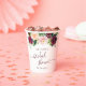 Estas tazas de papel floral burgundy y rosadas son el toque perfecto para el decorado de la fiesta de despedida de soltera. Encuentra platos de papel y servilletas a juego en la colección.