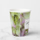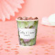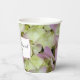 Personaliza estas bonitas Tazas de Papel para Boda de Hortensias Casi Rosadas para tu recepción de boda veraniega casual pero elegante o fiesta de jardín de despedida de soltera. Estas tazas desechables informales pero elegantes presentan una fotografía floral pintada digitalmente de cerca de las flores de hortensia cuando comienzan a volverse rosadas.