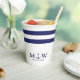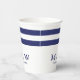 Bandas de anclaje blanco azul marino náutico monograma iniciales fiesta de boda Copas de papel. Personalizar de texto náutico de navegación, nombre del capitán. Nombre del barco, tienda, nombre comercial. diseño minimalista, sencillo y elegante, ideal para marineros, barcas, vela y paseos en bote. ¡Feliz navegación!