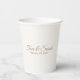 Incluya tazas elegantes de papel para su celebración boda. Ideal para parejas que buscan artículos de fiesta de boda elegantes. La parte delantera y trasera muestra el nombre de la pareja y la fecha del boda. Utilice la plantilla para personalizar del texto. Crea tus propias tazas de papel boda.