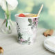 En esta colección de estampados florales se utiliza un tipo de letra de firma manuscrita combinado con un sans serif moderno para establecer un tono cálido e íntimo para su boda. El vaso de papel que se muestra aquí incluye sus nombres y fecha boda con un borde de flores exuberantes y follaje en tonos de malva suave a verde salado. Busque ID771 para ver otras piezas y opciones de color para este conjunto.