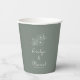 Este lujoso destino verde con tazas de papel de boda floral es perfecto para una boda de invierno. El diseño presenta flores y flores de manzana acuarela de fondo verde.