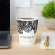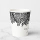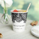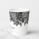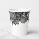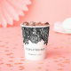 Estas tazas de papel personalizado son perfectas para bodas, fiestas de compromiso y otros eventos especiales. Presentan ilustraciones de rosas blancas y negras en un estilo antiguo de grabado y tu propio texto en negrita, con letras de impresión negras sobre un fondo blanco y claro.