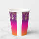 Vasos De Papel Boda indio Monograma Damask Naranja morado rosado