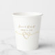 Elegante, moderno, sencillo, minimalista taza de papel boda con nombres, dátiles y corazón de cuerda dorada.
